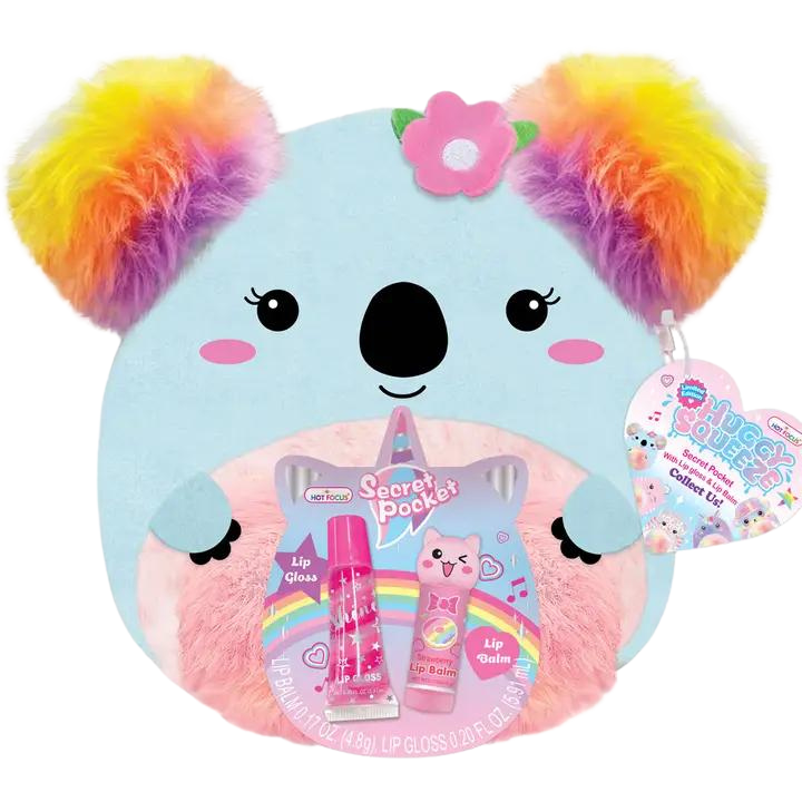 Introducing the Huggy Squeeze with Beauty, Koala—one of Princess Cotton Candy’s favorite products! This cuddly and squishy koala comes with a glamorous twist, perfect for hugging and squeezing. Not only is it super soft, but it also includes a lip gloss and lip balm to add some beauty fun to playtime. A delightful combo of cuteness and glam, this plush koala is the perfect companion for anyone who loves a little sparkle with their snuggles!