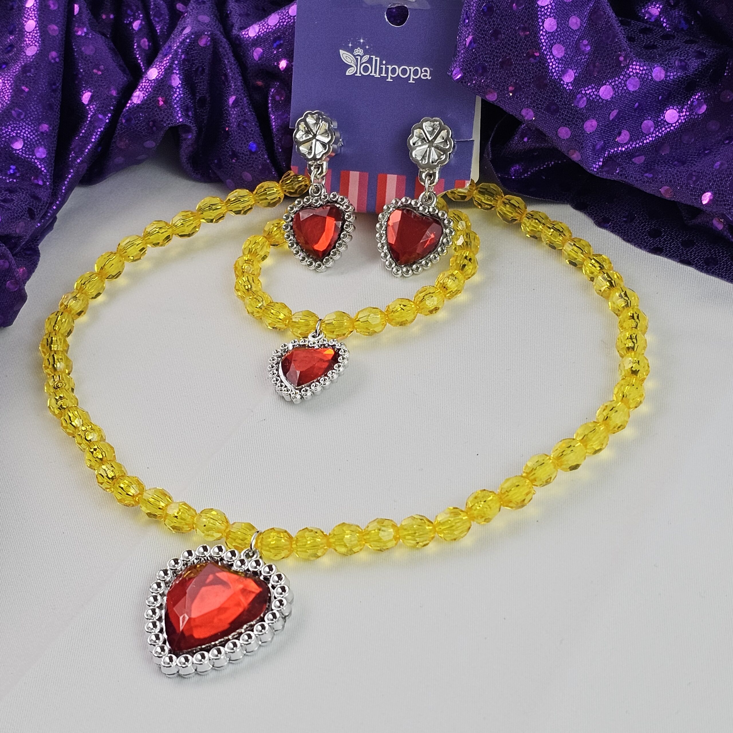 Grab this Lollipopa® Princess Jewelry Set in the color yellow gold! This adorable set is perfect for the fashionable young one aged 3 to 9, ready to sparkle and shine at any playful occasion. Set includes sparkling clip-on earrings, a shimmering bracelet, and a dazzling necklace with pendant, each piece awash in a cool blue hue that enhances every dress-up adventure.